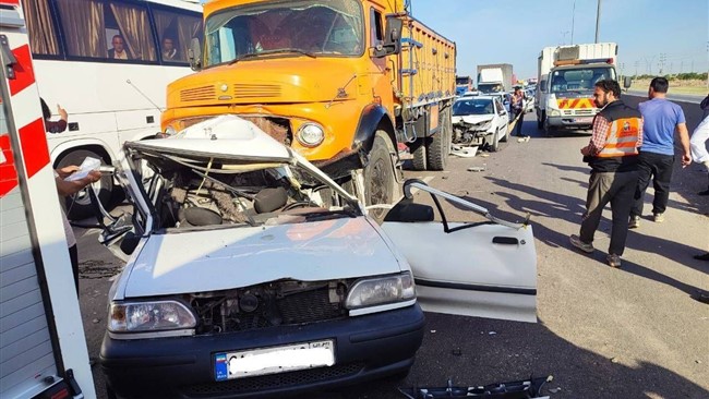 اولین فیلم از تصادف مرگبار کامیون، مینیبوس و پراید در محور دماوند