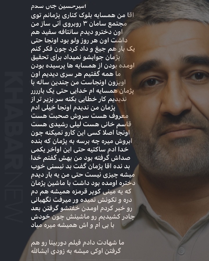 امیرحسین اصلانیان همبازیِ قدیمِ پژمان جمشیدی پیامی منتشر کرده که ظاهرا از طرفِ همسایگانِ پژمان است و سندِ برائتِ اوست.