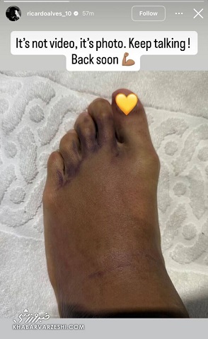 آلوز از شدت جراحت پای خود عکسی گذاشت و نوشت: به زودی برمیگردم.