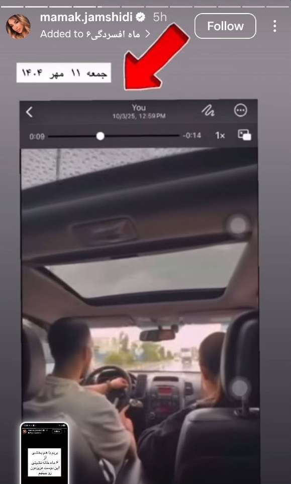 مامک جمشیدی با انتشار چند استوری از صفحه شاکی پرونده اشاره کرده است: «بریم با هم بخشی از ۶ ماه خانه نشینی این دوست عزیزمون رو ببینیم»