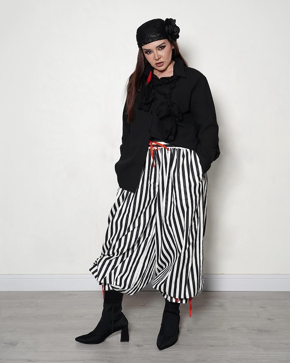 استایل عجیب ندا قاسمی با شلوار راه راه همه را غافلگیر کرد