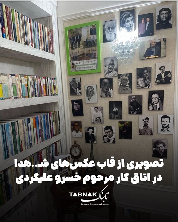 تصویری از قاب عکسهای نصب شده در اتاق کار مرحوم خسرو علیکردی را در ادامه مشاهده میکنید.