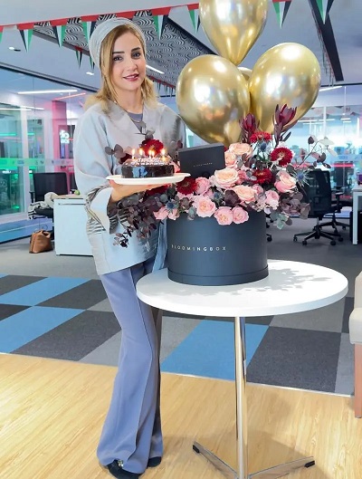 تصویری از جشن تولد ۴۸ سالگی شبنم قلی خانی در محل کارش در دبی را ببینید خانم قلی خانی چند سالیست که از ایران به امارات متحده مهاجرت کرده و مقیم دبی است.